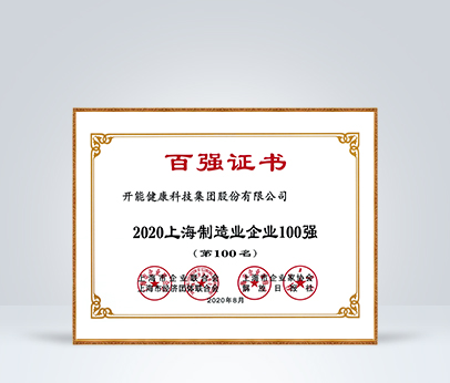 2020年被評為上海民營制造業企業100強