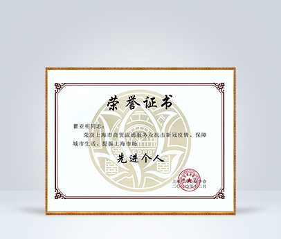 2020總裁瞿亞明榮獲上海市商貿流通服務業抗擊新冠疫情、保障城市生活、提振上海市場先進個人