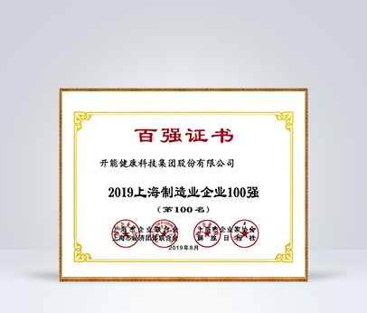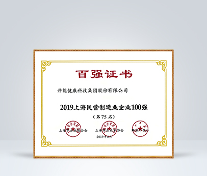 2019年被評為上海民營制造業企業100強